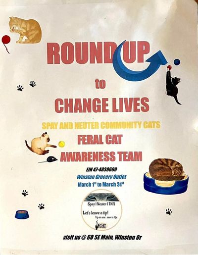 If you’re shopping at Grocery Outlet in Winston this month, please consider rounding up. Together, our community can turn small change into BIG change for the kitties.